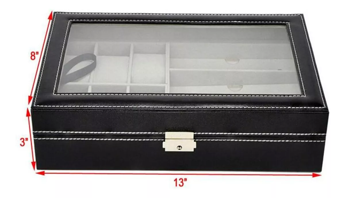 Capacidad: Compartimentos mixtos para relojes y lentes (optimización de espacio). 🗄️
